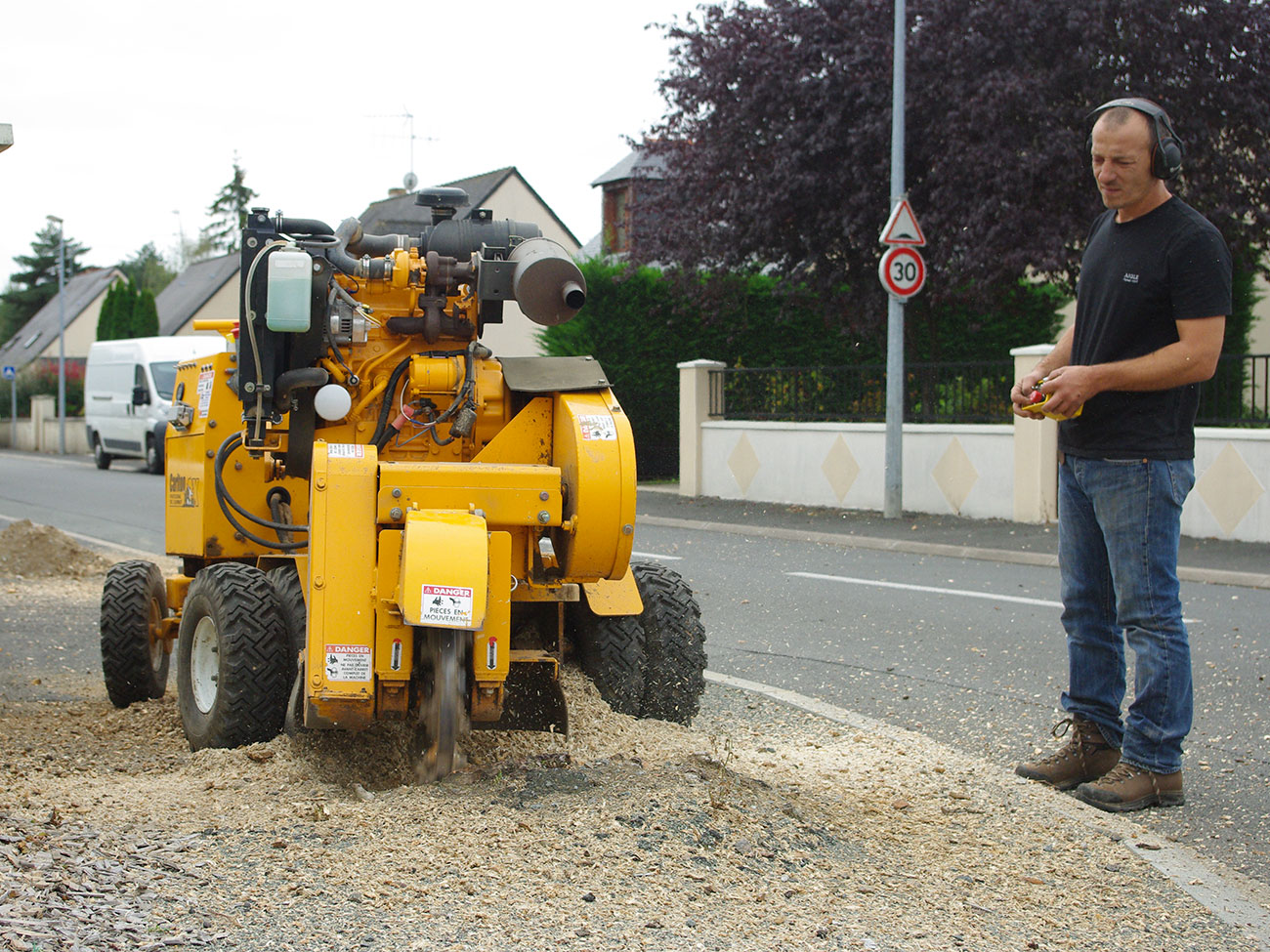 Rognage de souches dans les trottoirs de St Lambert la Potherie